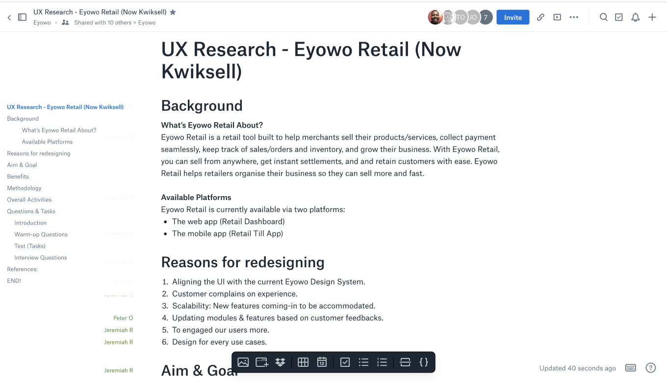 Observe: It was very insightful spending time with our users and observing how they conduct their business. We visited restaurants simply to observe how their customers come in and how they are attended to. It also helped us to see the pain points that weren’t documented initially.