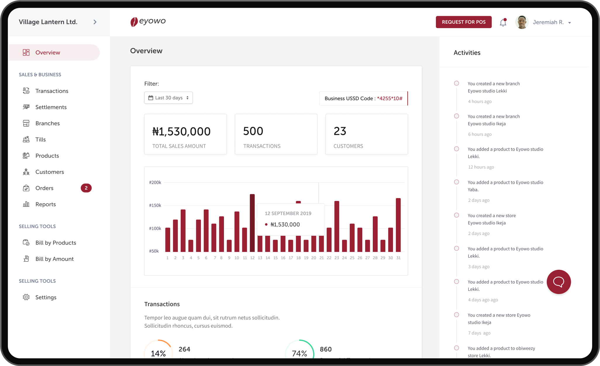 Another cool thing we did was to tailor the home only to show the merchant what’s happening in their business for that day, e.g., earnings for that day (real-time) & orders so far for that day. Also, the most crucial action a merchant will take “make a sale” is made very prominent and easy to access. Fun fact – eight (8) different iterations of the home design was done before we arrived at this final one.